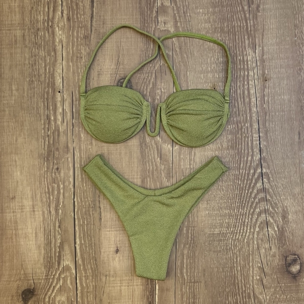 Biquíni Aro V Canelado Calcinha Asa Delta - Verde