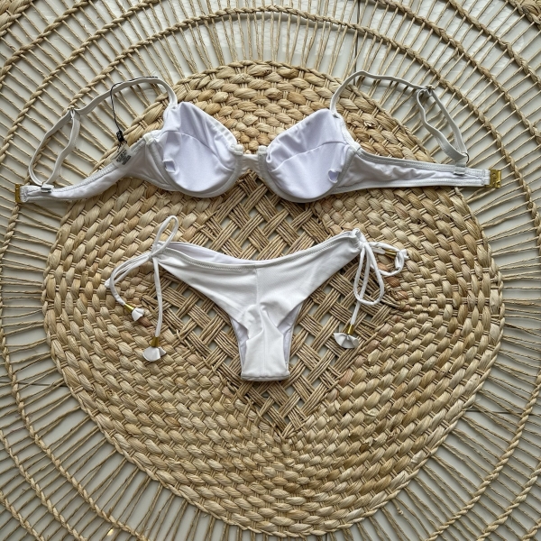 Informações do produto: Biquíni Calcinha Lacinho Top Meia Taça - Branco