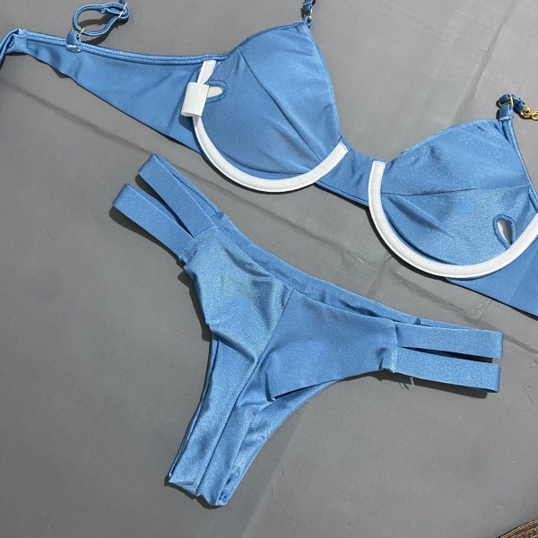 Informações do produto: Biquíni com Duas Alças Corrente e Lisa Calcinha com Tiras - Azul