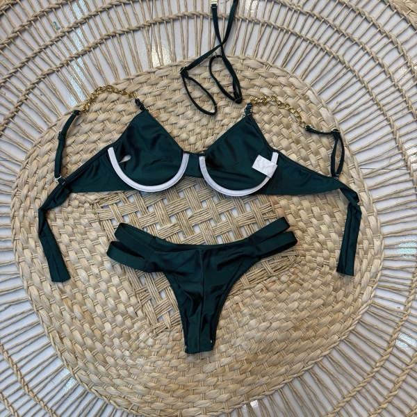 Biquíni Luxo com Alças de Corrente Dourada e Calcinha com Duas Tiras Laterais