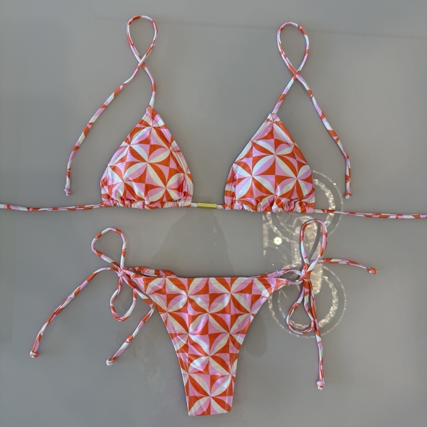 Informações do produto: Biquini Cortininha E Calcinha Fio E C/amarrações Laterais - Laranja/Rosa