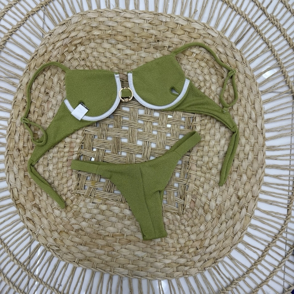 Informações do produto: Biquíni Meia Taça Bojo Estruturado E Detalhe Central Dourado - Verde Pistache