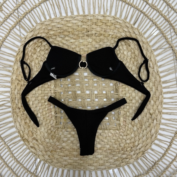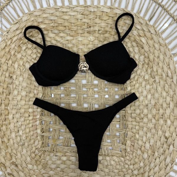 Informações do produto: Biquíni Meia Taça Bojo Estruturado E Detalhe Central Dourado - Preto