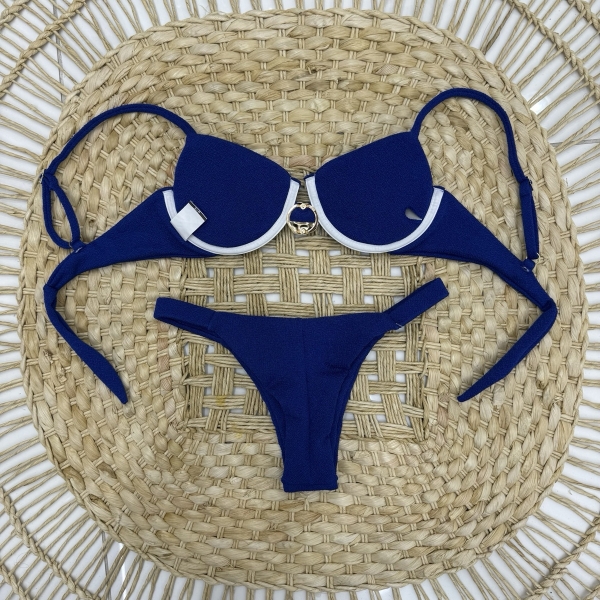 Informações do produto: Biquíni Meia Taça Bojo Estruturado E Detalhe Central Dourado - Azul