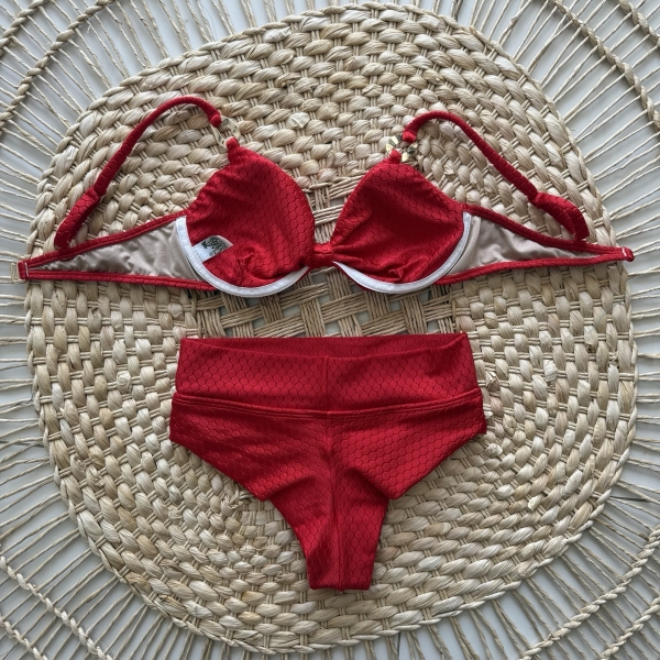 Informações do produto: Biquíni Meia Taça Cos Alto Texturizado - Vermelho