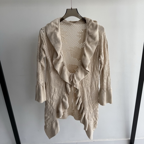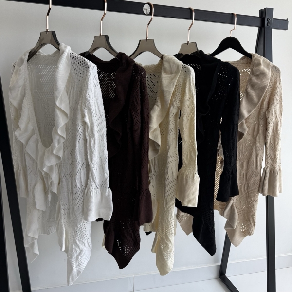 Informações do produto: Casaco Feminino Tricot com Babados e Punho Flare - Bege Claro