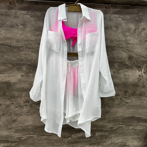 Informações do produto: Conjunto Saída De Praia Viscolinho Blusa Manga Longa + Sh - Branco