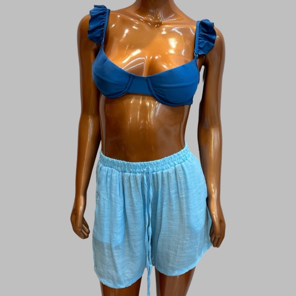 Informações do produto: Conjunto Saída De Praia Viscolinho Blusa Manga Longa + Sh - Azul-claro