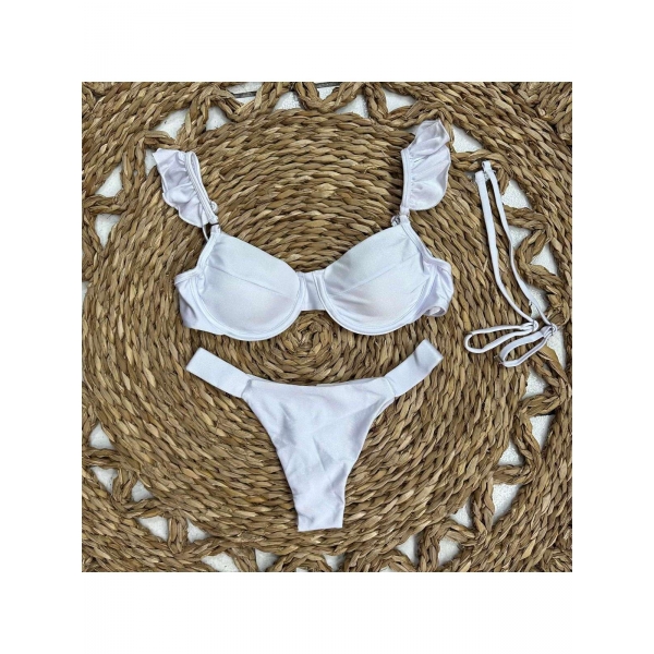 Kit 03 Peças Biquíni De Babado + (Saia Saída de Praia Tam Único) - Branco
