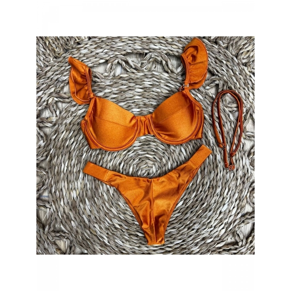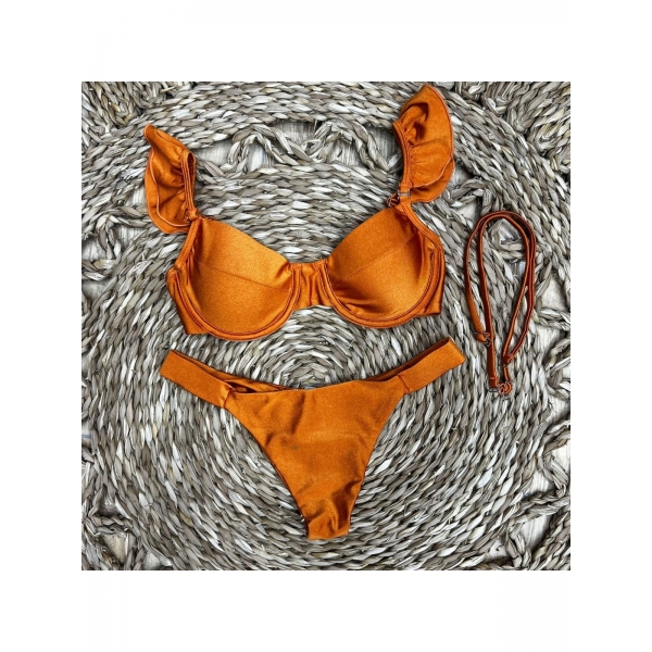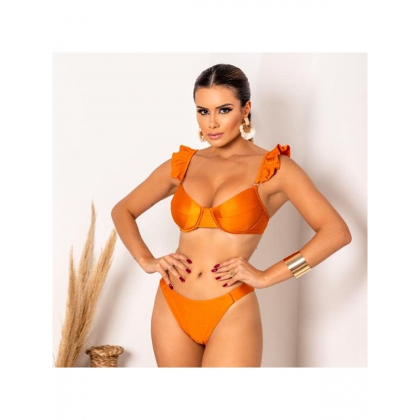 Informações do produto: Kit 03 Peças Biquíni De Babado + (Saia Saída de Praia Tam Único) - Bronze