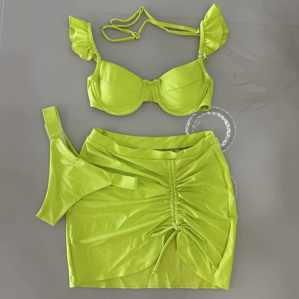 Kit 03 Peças Biquíni De Babado + (Saia Saída de Praia Tam Único) - Verde Lima