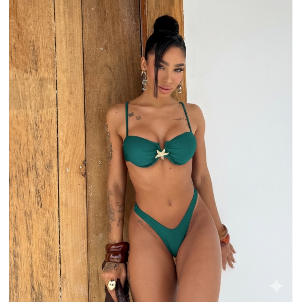 Kit 3 Pçs Biquíni Estrela Dourada E Calcinha Asa Delta+saia - Verde