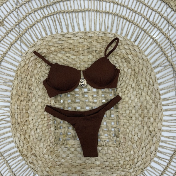 Kit Biquíni Meia Taça Bojo Estruturado E Detalhe Central - Marrom