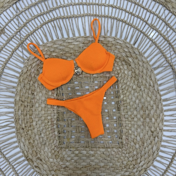 Kit Biquíni Meia Taça Bojo Estruturado E Detalhe Central - Laranja
