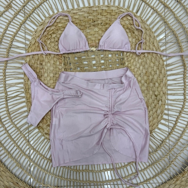 Informações do produto: Kit De Biq Cortininha Tranças Nas Alças E Calcinha + Saia - Lilás