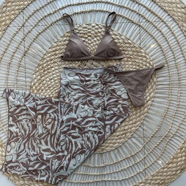 Informações do produto: Kit Trio De Biquíni E Saia Estampa Tropical - Bege