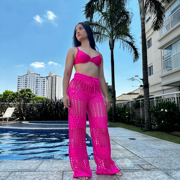 Informações do produto: Calça Lívia Rendado Saídas de Praia de Tricot - Rosa