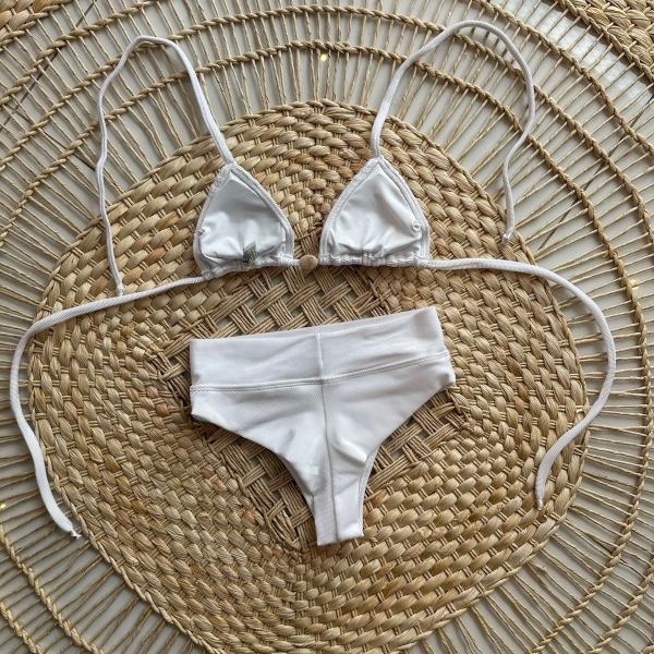 Novo Biquíni Macramê Texturizado Cintura Alta - Branco