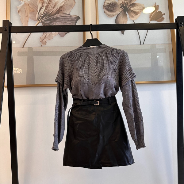 Adicione um toque de elegância e modernidade ao seu guarda-roupa com esta saia de couro com cinto e zíper lateral. Feita com revestimento em poliuretano e tecido base 100% algodão, esta saia é a escolha perfeita para quem busca estilo e conforto.