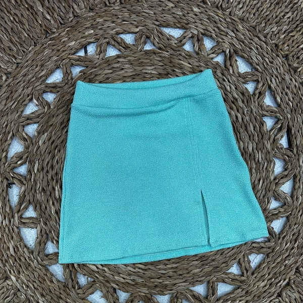 Informações do produto: Saia Tecido Texturizado Saída de Praia Com Fenda Ref:0400139 - Verde Água